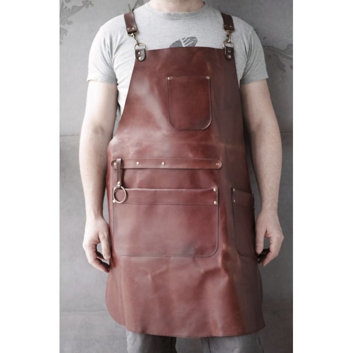 Фартук из натуральной кожи рыжего цвета с эффектом старения толщиной до 1.6 мм.
