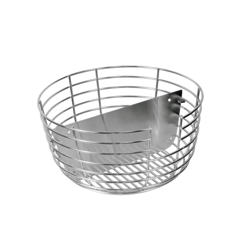 Вкладыш для размещения угля внутри топки гриля Kamado представляет собой корзину из нержавеющей стали с вставкой, которая разделяет ее на две части. Таким образом можно организовать разные температурные зоны внутри гриля.