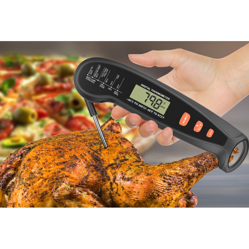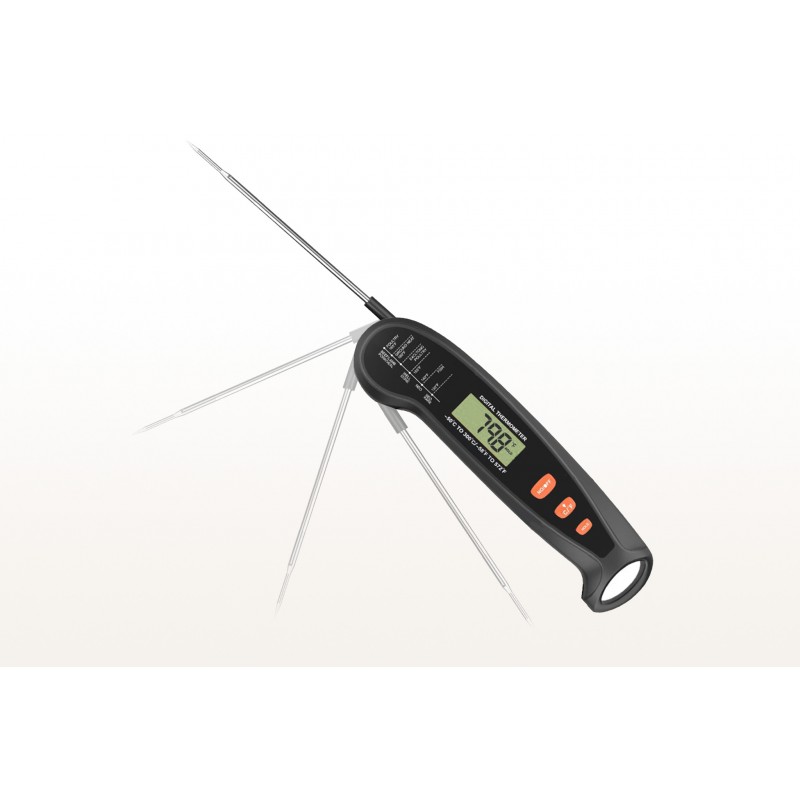Термометр оснащен тонким поворотным зондом из нержавеющей стали, что позволяет легко погружать его в мясо, рыбу, выпечку и другие продукты, не повреждая их.