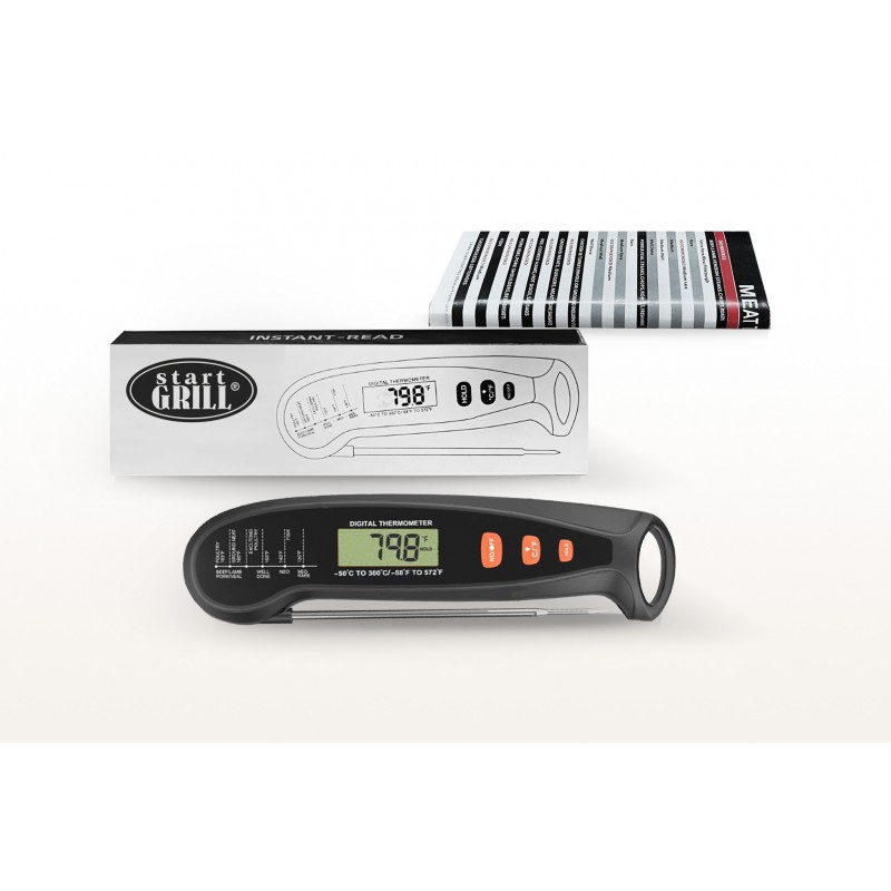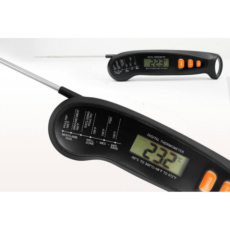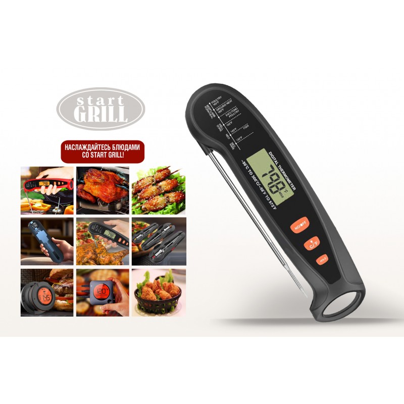 Диапазон измерения от -50 °C до 300 °C (от -58 °F до 572 °F) делает его универсальным для контроля температуры приготовления различных блюд. Удобный для считывания дисплей с желтой подсветкой покажет температуру с точностью до ±1°F (±1°C) (в диапазоне -20 °C до 150 °C / 45 °F до 302 °F).