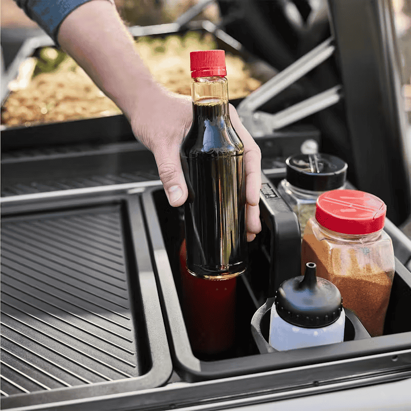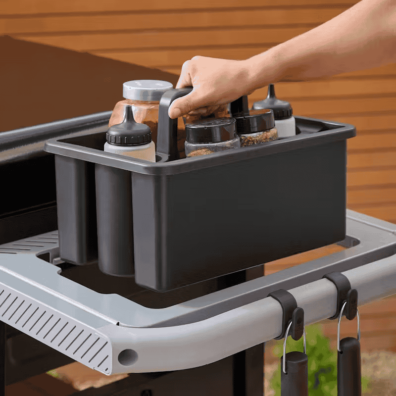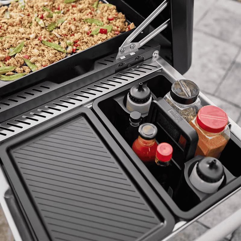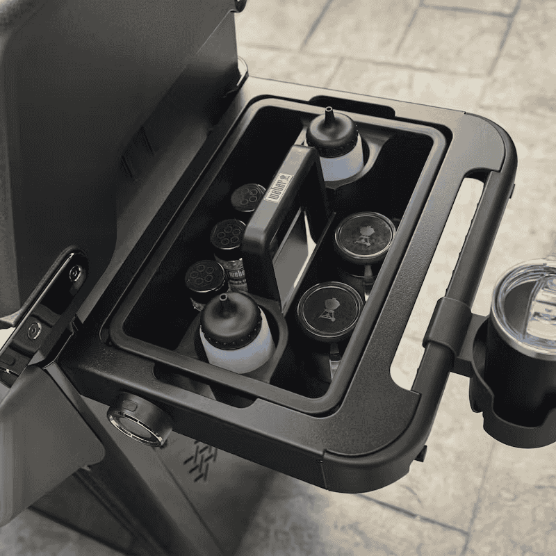 Контейнер с закрывающимся лотком Weber Works (3400128)Устали бегать между кухней и грилем? Если во время приготовления на гриле вы то и дело забываете приправы, инструменты или соусы, и каждый поход на кухню выбивает вас из ритма — у нас есть для вас идеальное решение! Контейнер с закрывающимся лотком Weber Works — это практичный аксессуар, который совершенно меняет организацию приготовления пищи на свежем воздухе. Он позволяет удобно транспортировать все необходимые вещи из дома в садовую кухню, чтобы всё было всегда под рукой.Продукт совместим с грилями, плитами и коптильнями Weber, оборудованными современной системой Weber Works. Благодаря этому ваше боковое рабочее место превращается в функциональную рабочую станцию, облегчая организацию процесса и позволяя полностью сосредоточиться на самом важном — идеальном вкусе блюд. Ещё один плюс контейнера с лотком Weber Works — простота установки: для монтажа не нужны никакие дополнительные инструменты, нужно просто вставить его в специальное отверстие на гриле! Выберите контейнер с закрывающимся лотком Weber Works и организуйте свою рабочую зону у гриля как настоящий профессионал!Совместимость с Weber WorksКонтейнер с закрывающимся лотком был разработан для максимальной универсальности и легкой интеграции с широким спектром устройств Weber. Этот аксессуар идеально работает с газовыми грилями, гриль-плитами и коптильнями, оснащёнными боковыми столиками и системой Weber Works. Благодаря этому вы можете создать цельное и функциональное рабочее пространство прямо в своём саду!Простота монтажаУстановка контейнера не требует инструментов или сложных инструкций. Нужно всего несколько простых движений — и контейнер с лотком займёт своё место. Система монтажа очень интуитивна и удобна. Цените быстрые и понятные решения? Контейнер с закрывающимся лотком — аксессуар, который вам точно пригодится!Удобная транспортировкаБольше не нужно носить бутылки, тарелки и аксессуары в руках! Контейнер позволяет безопасно и аккуратно переносить всё, что нужно для гриля — от ингредиентов и соусов до инструментов. Благодаря закрывающемуся лотку содержимое не просыпается, а эргономичная конструкция позволяет легко переносить контейнер с кухни в сад. Контейнер Weber Works — удобство, с которым вы больше не захотите расставаться!Складная ручкаВстроенная ручка контейнера Weber Works создана для максимального комфорта при переноске — без необходимости её отсоединять или снимать. Прочная складная конструкция позволяет легко сложить ручку, когда она не нужна, экономя место и облегчая хранение. В сложенном положении ручка дополнительно фиксирует крышку, надёжно удерживая её на месте. Это практичное решение, облегчающее повседневное приготовление на гриле!