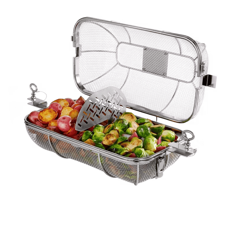 Система для приготовления изысканных блюд WEBER CRAFTED Gourmet BBQ System выводит приготовление пищи на открытом воздухе на совершенно новый уровень. Просто прикрепите корзину для вертела WEBER CRAFTED к вашему грилю, чтобы приготовить хрустящий картофель фри, овощи или даже попкорн. Необходим вертел. • Равномерное распределение тепла обеспечивает быстрое приготовление и хрустящую корочку. • Быстро соединяется с вертелом. • Готовьте несколько блюд одновременно с помощью съемной перегородки (в комплекте). • Изготовлено из прочной нержавеющей стали и подходит для мытья в посудомоечной машине. • Необходим вертел.