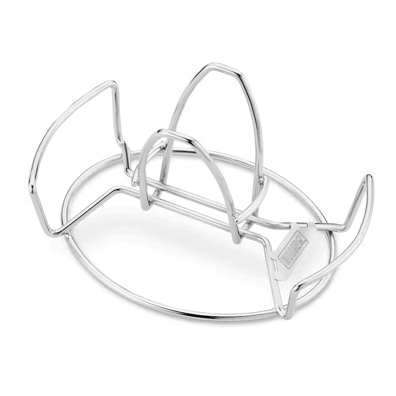С помощью подставки для птицы вы легко приготовите жареную курицу на пивной банке, которая удовлетворит любой вкус. Подставка позволяет добиться хрустящей корочки и сочного, нежного мяса. Просто поместите банку вашего любимого пива или другого напитка объемом 330 мл в центральное кольцо и нанижите курицу на шампур.
