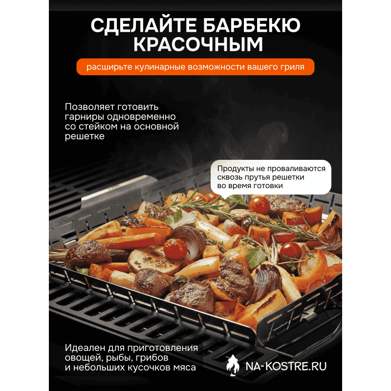 Система для приготовления изысканных блюд WEBER CRAFTED Gourmet BBQ System позволяет готовить на открытом воздухе, о чем вы раньше и не мечтали. Просто замените подходящую решетку на корзину для гриля WEBER CRAFTED, чтобы идеально карамелизовать овощи, нежные морепродукты и небольшие куски мяса. Используйте совместимый гриль, раму и решетки WEBER CRAFTED.• Подходит для моделей Genesis 2022+ и SmokeFire EPX4/EPX6. Также подходит для моделей Genesis 2016–2021 годов выпуска в сочетании с комплектом рамы (7687) и моделей Spirit 2016–2021 годов выпуска в сочетании с комплектом рамы (7688) .• Позволяет готовить небольшие, нежные продукты, не проваливаясь сквозь решетку. • Требуется рама и решетки WEBER CRAFTED.• Способствует циркуляции тепла для идеально приготовленных овощей.• Конструкция из нержавеющей стали, пригодная для мытья в посудомоечной машине. • Убедитесь, что ваш гриль совместим с аксессуарами для гриля WEBER CRAFTED.