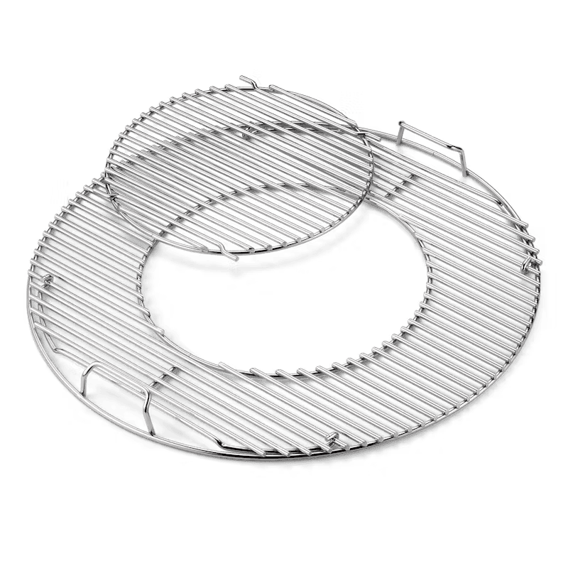 Система Weber Gourmet позволяет добавлять уголь в мангал, не снимая всю решетку, благодаря съемной внутренней решетке диаметром 30 см. Боковые части решетки — откидные.Можно использовать все специальные аксессуары Weber Gourmet, которые идеально подходят к центральному отверстию решетки.Также вы сможете готовить традиционно, устанавливая кастрюли или сковороды диаметром до 30,5 см в центральное отверстие.К адаптируемым аксессуарам Weber Gourmet относятся:решетка для стейков,планча,вок,стойка для курицы,камень для пиццы,корейский грильEbelskiver.Эта решетка подходит для любого угольного гриля Weber диаметром 57 см.Система Weber Gourmet выводит барбекю с вашей решеткой Weber на новый уровень.Изготовлена из утолщенной хромированной стали