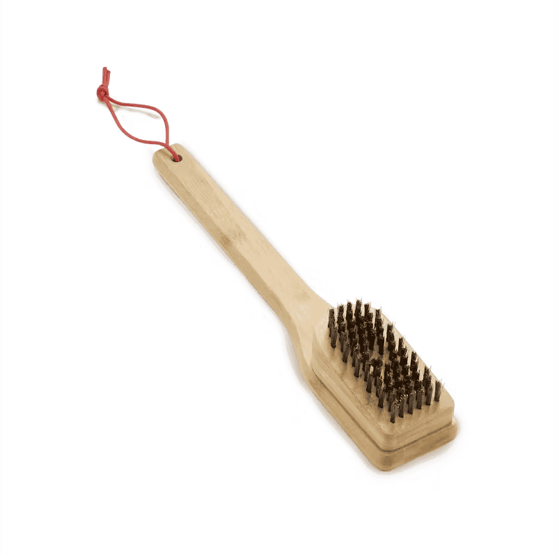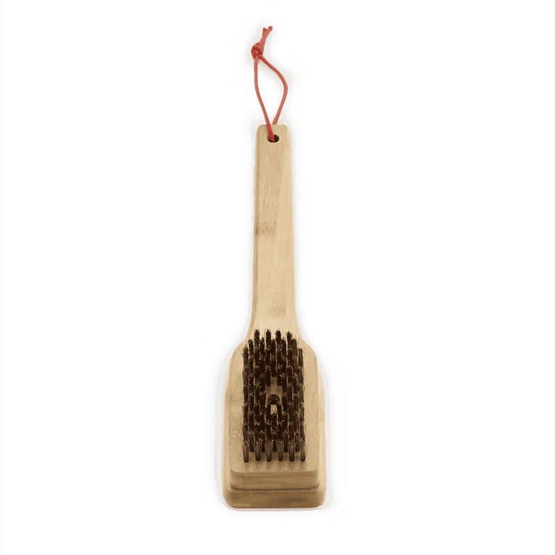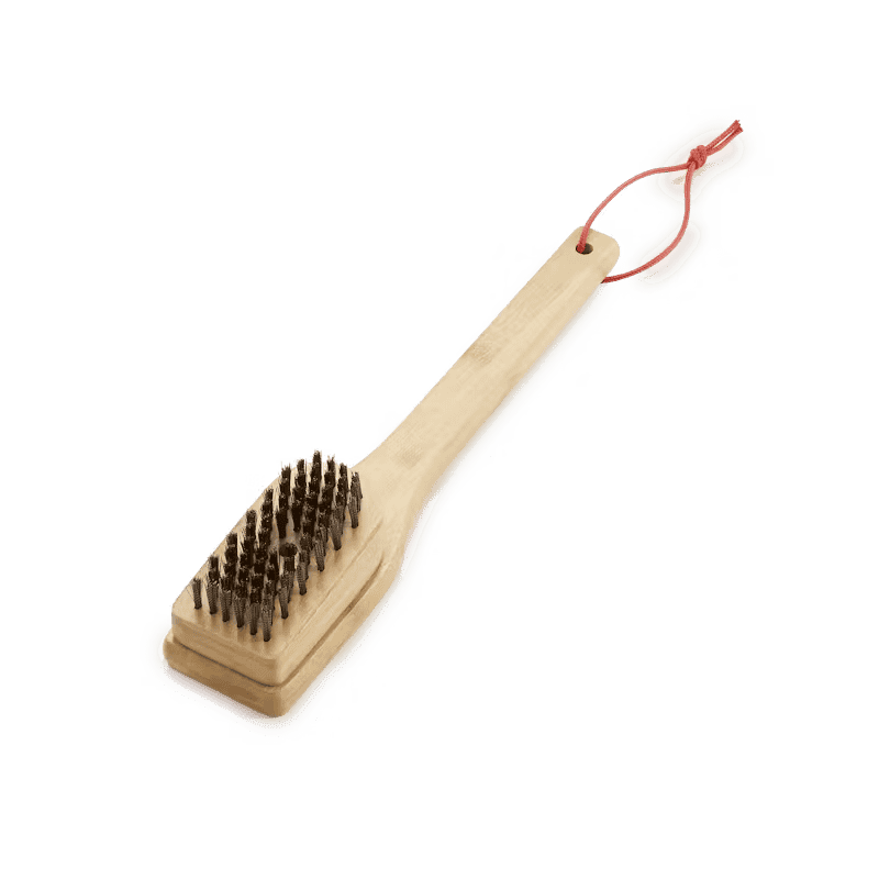 Очистите решетку и наслаждайтесь лучшими результатами приготовления на гриле. Быстро и легко удаляйте пригоревшую пищу, жир и другие загрязнения с каждой решетки с помощью этой бамбуковой щетки для гриля. Изогнутый кончик позволяет чистить решетку, не касаясь горячего гриля. Чтобы продлить срок службы вашего гриля и гарантировать, что каждое блюдо будет таким же вкусным, как и предыдущее, очищайте решетку этой щеткой перед каждым использованием. • Быстро и легко удаляет грязь • Изогнутый кончик щетины помогает соблюдать безопасное расстояние от горячего гриля • Ручка длиной 30 см позволяет добраться до всех частей решетки • Петля облегчает подвешивание и хранение • Соответствует стандартам CSA • 2-летняя гарантия