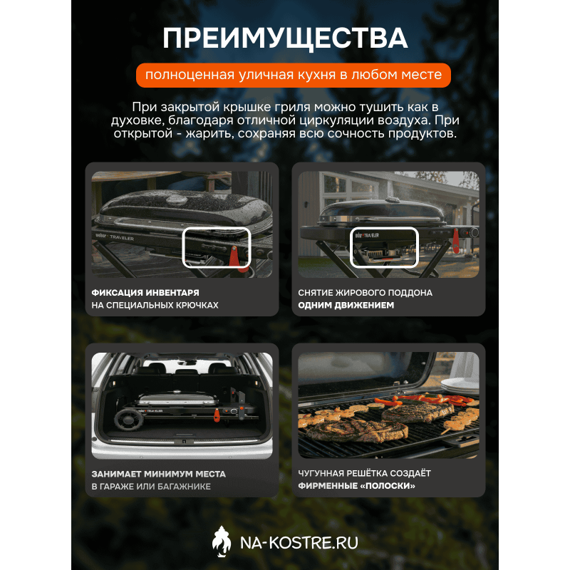 | Дополнительно | боковой столик; поддон для сбора жира; термометр |