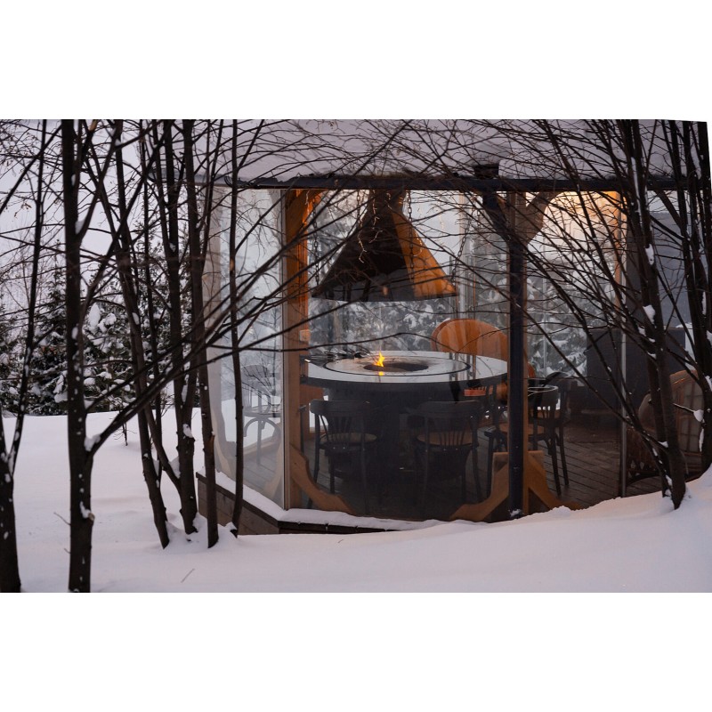 Гриль-стол состоит из нескольких элементов – это и гриль-очаг, стол (гранит), камин, дровник. Радиальный классический дизайн идеально впишется на любой участок.