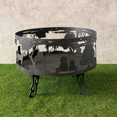 Костровая чаша "Ёжик в тумане" ⌀ 1000 5мм представляет собой чашу с рисунком в стиле популярного мультфильма "Ежик в тумане", круглой формы, с ножками. Для диаметра 600 мм количество ножек - 4, для большего диаметра - 6. Чаша изготовлена из горячекатанной стали с покрытием огнеупорной эмалью Certa. ..