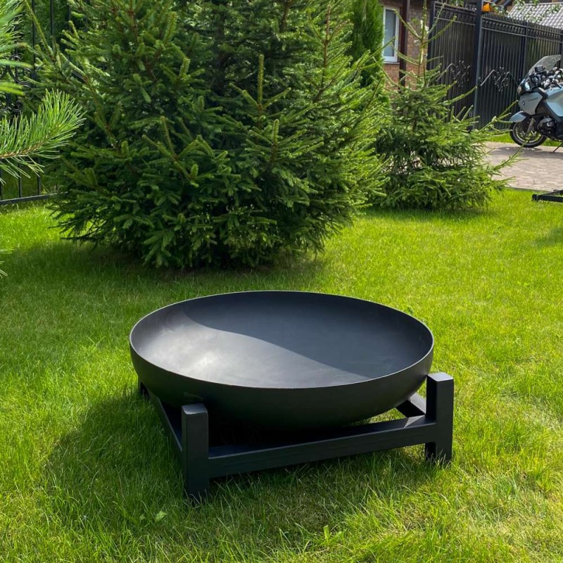 Костровой очаг с брутальным характером. Устойчивый и добротный, для тех, у кого в хозяйстве полный порядок. Стальная чаша прочно приварена к устойчивой опоре. В основании кострового очага дренажное отверстие для быстрой и удобной уборки золы. Стальной клапан-заглушка в комплекте. Дополнительно вы можете заказать защитную крышку с усиленными бортами, это удобно в ежедневном использовании при переменчивой погоде. Меньше избыточной влажности внутри костровой чаши - меньше проявление коррозии.