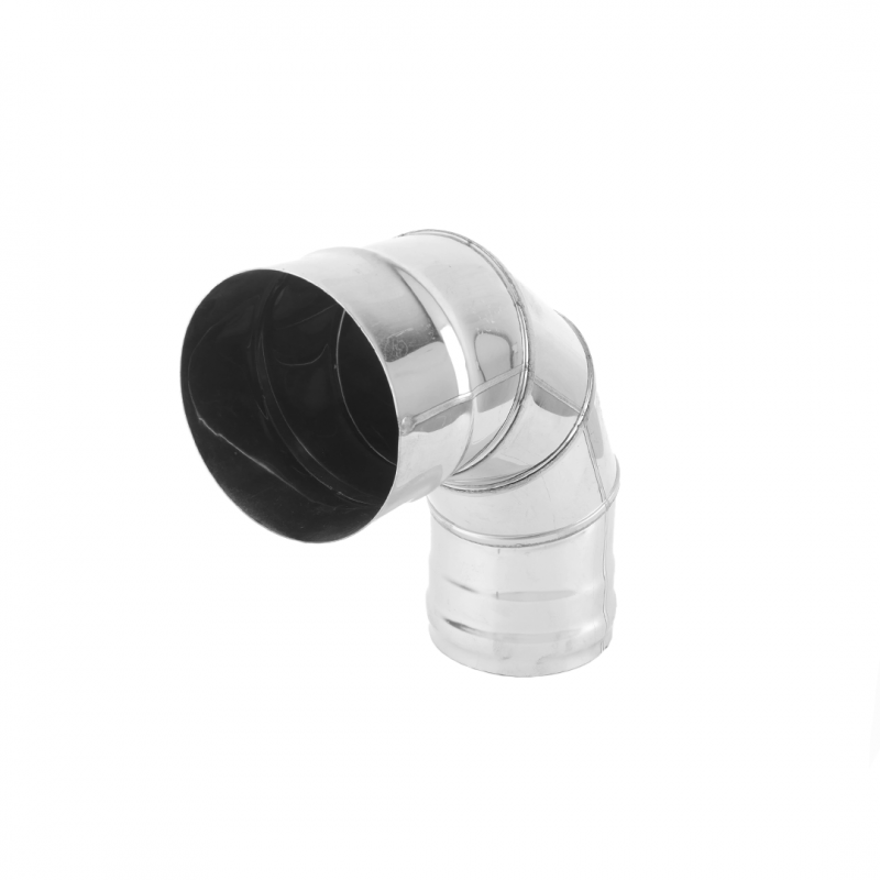 Колено используется для изменения направления труб дымохода на угол 90 градусов. Изготовлено из нержавеющей стали толщной 0,8 мм.