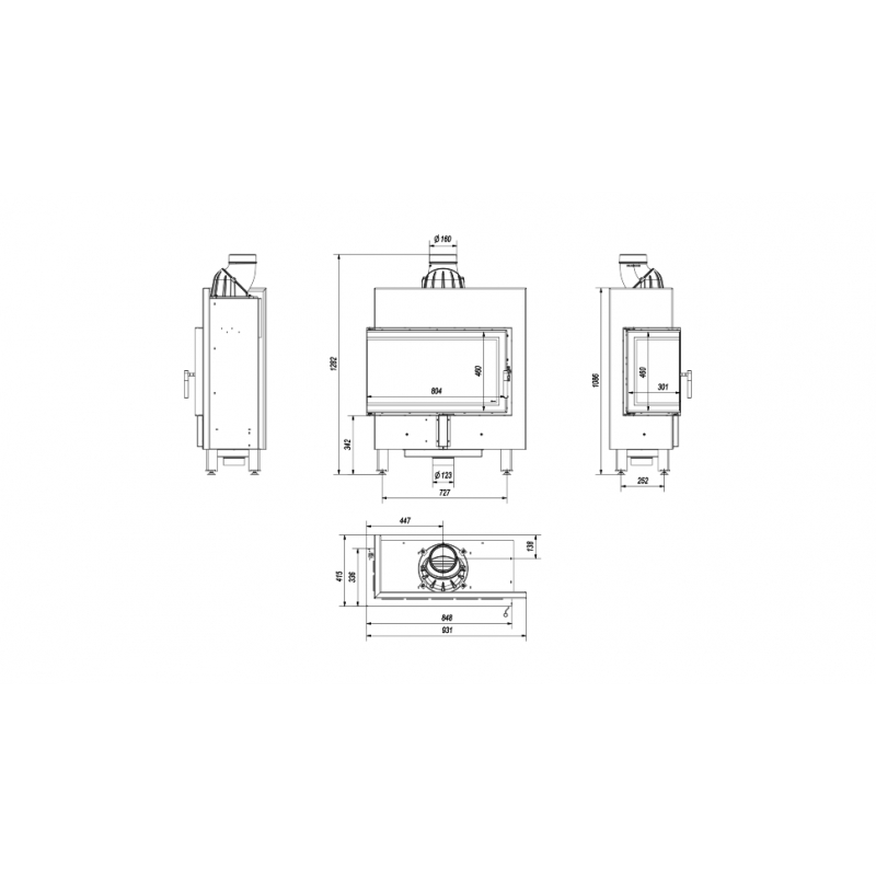 | Опции | вторичный дожиг, встроенные ножки, система чистое стекло, подача воздуха извне, декоративное исполнение |
