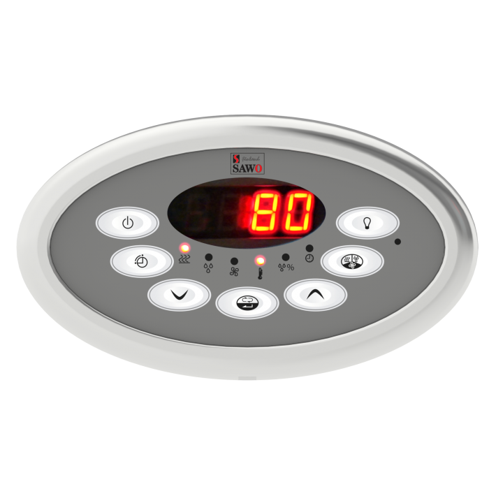 Пульт управления сауной Innova Classic S создан инженерами компании SAWO для электрокаменок собственного производства. Модель имеет интуитивно понятный интерфейс. Управление банной техникой при помощи пульта Innova Classic S станет настоящим удовольствием. Хромированная рамка, овальная форма корпуса и кнопок в сочетании с красной подсветкой данных дисплея делают пульт ярким и современным акцентом в интерьере любой сауны. Вы можете использовать пульт в непрерывном режиме в течении 4-24 часов. Он достаточно мощный и функциональный. Innova Classic S доступна регулировка температурного режима в диапазоне 40-110 градусов по Цельсию. При необходимости использования пульта с печами большой мощности рекомендуется дополнительное приобретение соответствующего блока мощности.