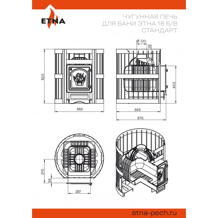 Чугунная банная печь ЭТНА 18 (ДТ-4С) Стандарт б/в оснащается глухой чугунной дверкой ДТ-4 и рассчитана на работу в парной объёмом до 18 кубических метров. С помощью этой модели обеспечивается быстрый равномерный прогрев парной, поддержание необходимой температуры и получение достаточного количества пара.