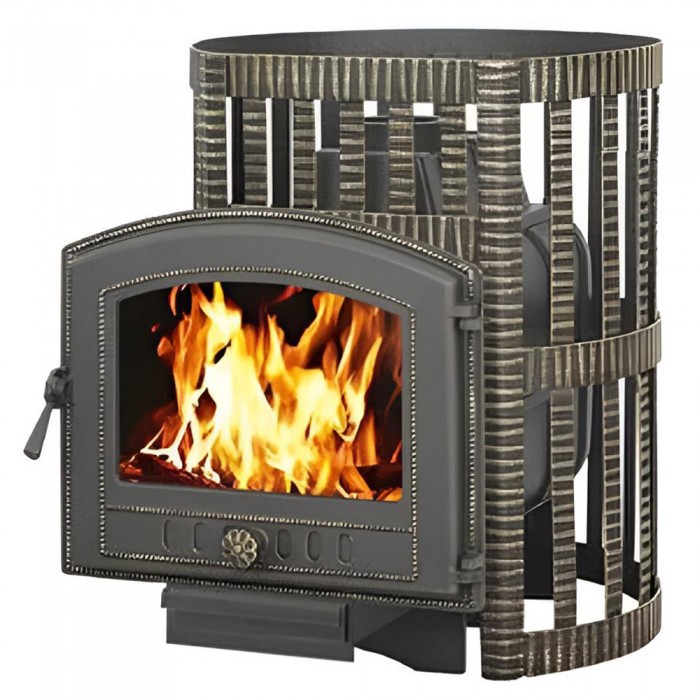 Банная чугунная печь Легенда Ковка 16 (224) укомплектована чугунной герметичной дверцей Везувий 224 с жаропрочным стеклом «SHOT ROBAX». Конвекционно-вентилируемый кожух "Ковка" изготовлен из металлической текстурированной полосы покрашенной термостойкой краской и покрытая патиной «Бронза».
