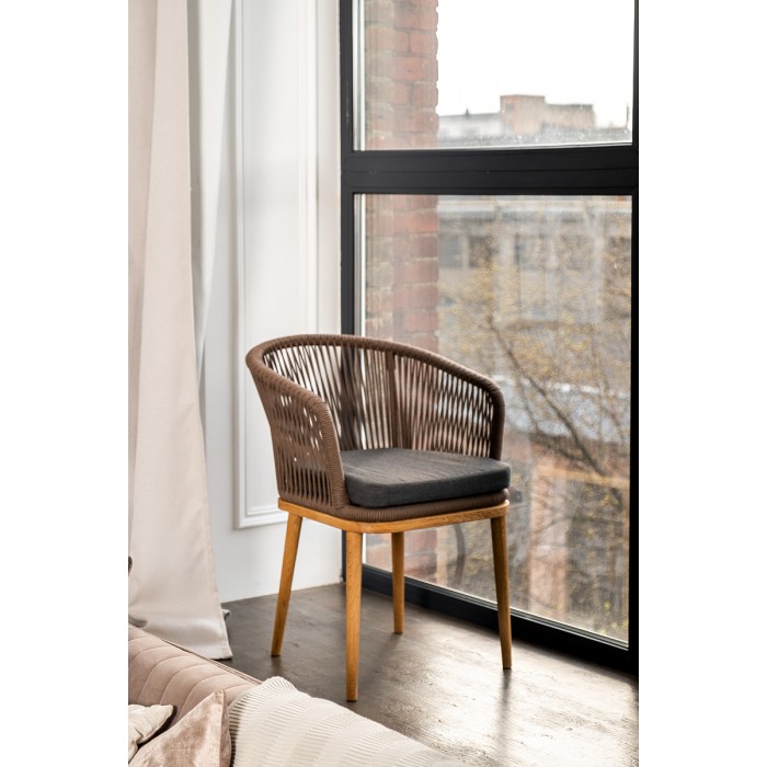 Марсель стул плетеный из роупа, основание дуб, роуп коричневый круглый, ткань темно-серая 6шт. 570Х620Х800, Витория деревянный стол из натурального тика, 200х100см 1шт. 2 000Х1 000Х770,