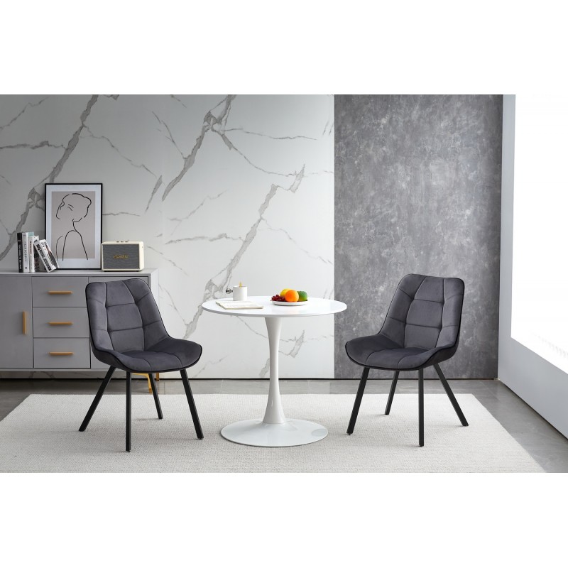 Черная столешница, сделанная из матовой керамики толщиной 12 мм, придает столу лаконичную элегантность. Металлическое основание и столб, покрытые черной порошковой краской, служат подстольем, обеспечивая устойчивость и долговечность изделия.