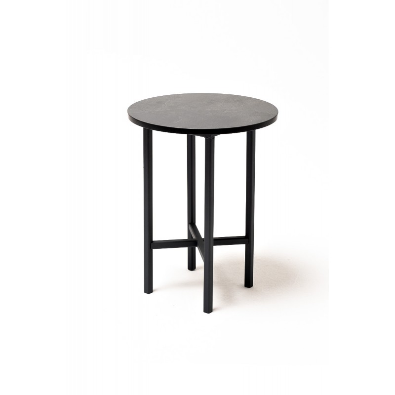 Подстолье столика выполнено из прочной стали, которая гарантирует устойчивость и надежность, а также имеет стойкое покрытие порошковой краской черного цвета. Благодаря этому, интерьерный столик идеально подходит для использования на открытых террасах и верандах.