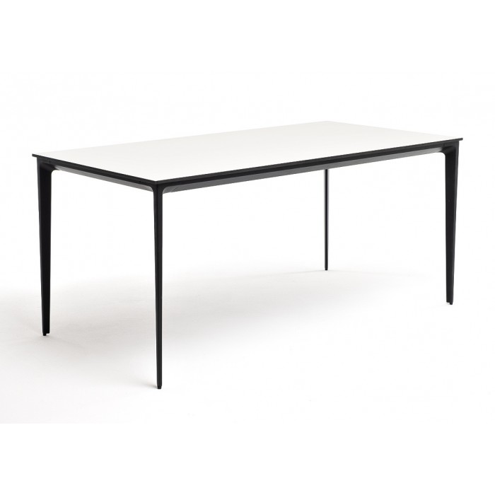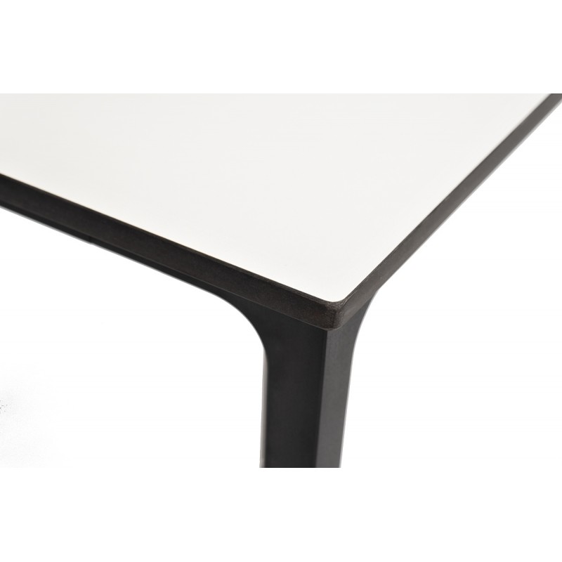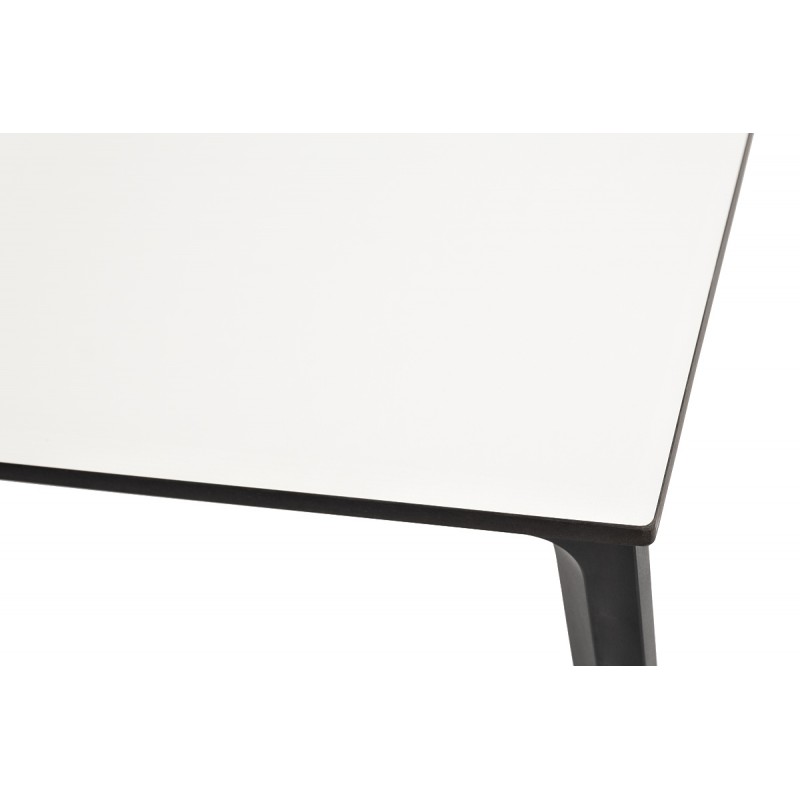Столешница выполнена из современного высококачественного монолитного компакт-пластик HPL, толщиной 12 мм в молочном цветом. Материал устойчив к высоким температурам, попаданию влаги и может использоваться при любых погодных условиях. Подстолье изготовлено из крашеного алюминия черного цвета.