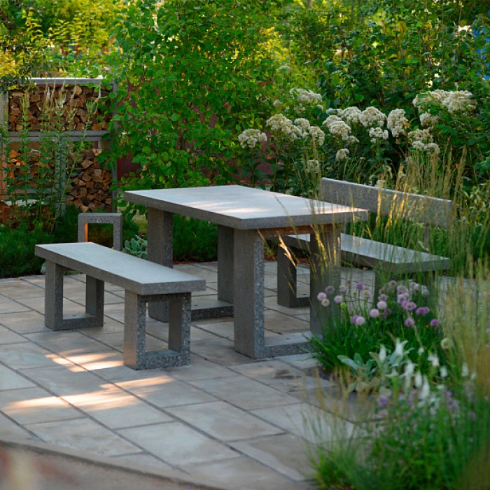 Стол и скамьи прекрасно комбинируются с остальными продуктами CONCRETIKA, но могут быть дополнены и другими предметами мебели и декора.