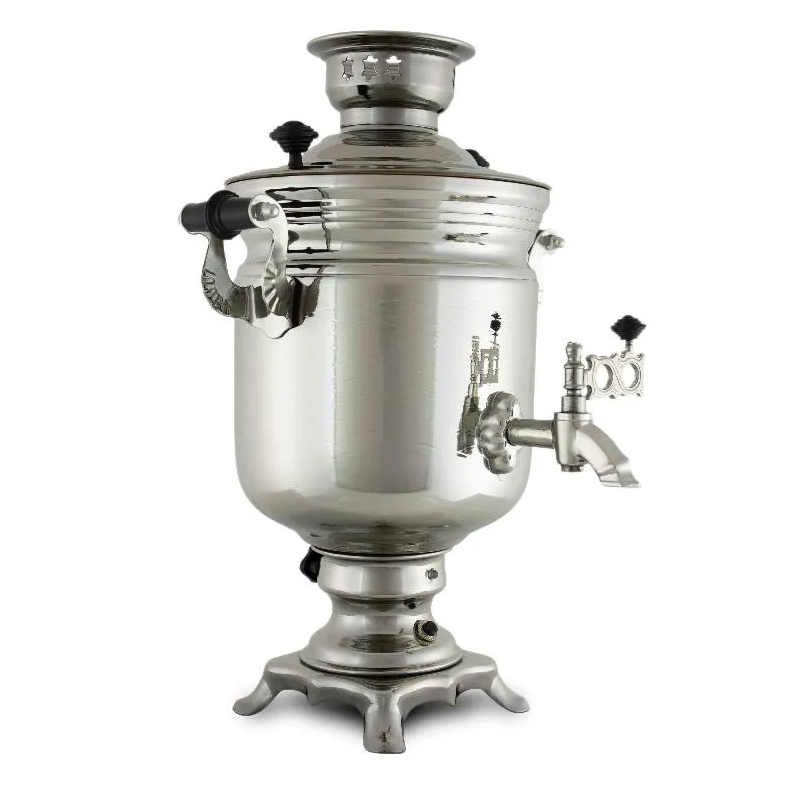 Специальное покрытие обеспечивает зеркальность самовара и сохранение его внешнего вида на долгое время.