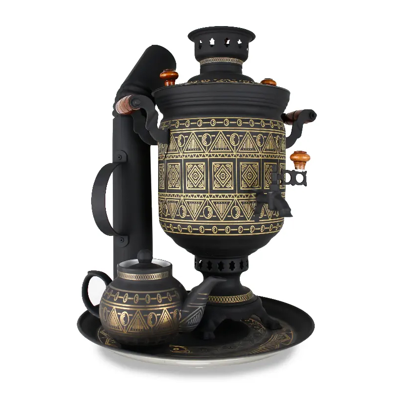 Набор «Презент» уже включает поднос, чайник и трубу в цвет самовара, так что все для растопки и чаепития уже есть в комплекте.