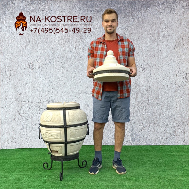 В комплекте с тандыром вы получаете все необходимое для комфортного приготовления - солнышко, совок, кочерга, шампура, колпачок, поддувало, а также инструкцию по первому обжигу и гарантию от производителя.