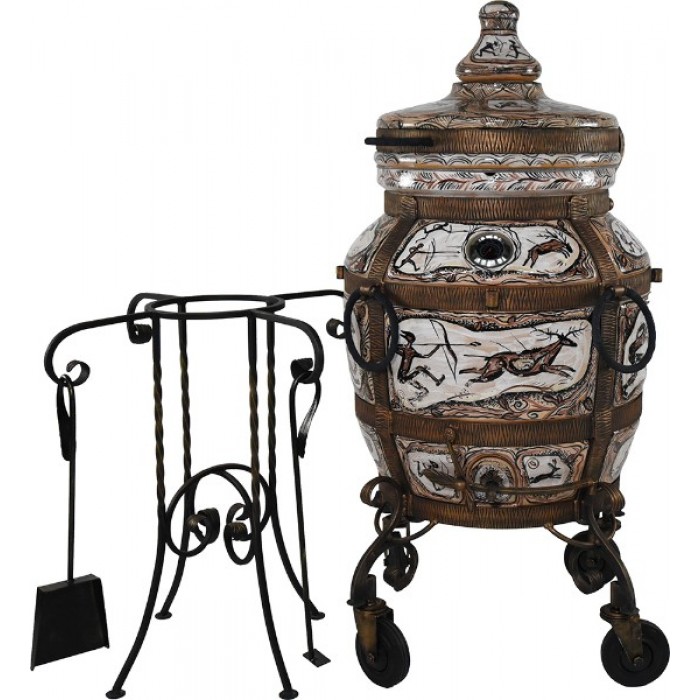 Вручную расписанный эксклюзивный тандыр «Охота» создан по технологии «графика». Он словно покрыт наскальными росписями: стилизованные фигурки аборигенов Австралии охотятся с луками на кенгуру и оленей. Тематика рисунков словно говорит: в тандыре «Охота» вы лучше всего приготовите восхитительные мясные блюда. Они не подгорят, не пересушатся, а, наоборот, останутся мягкими и сочными изнутри и покроются аппетитной корочкой снаружи.
