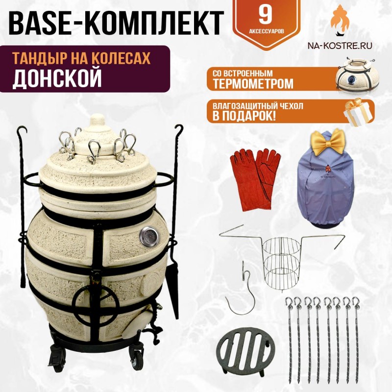 | Аксессуары в комплекте | подставка под тандыр, шампуры 8 шт, этажерка 3-ярусная, солнышко, чехол, перчатки термостойкие, совок, кочерга, крюк кованый для мяса |