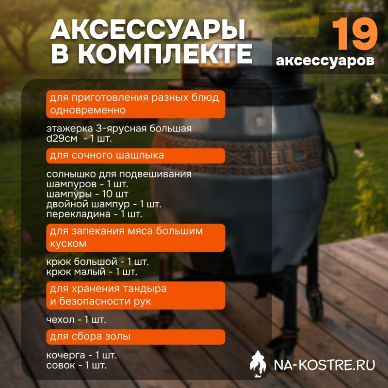 При каждом новом розжиге тандыр для дачи большой глиняный автоматически очищается от остатков пищи и жира, что делает его использование максимально гигиеничным и удобным. Тандыр не требует особого ухода и чистки, что особенно ценно для занятых людей.