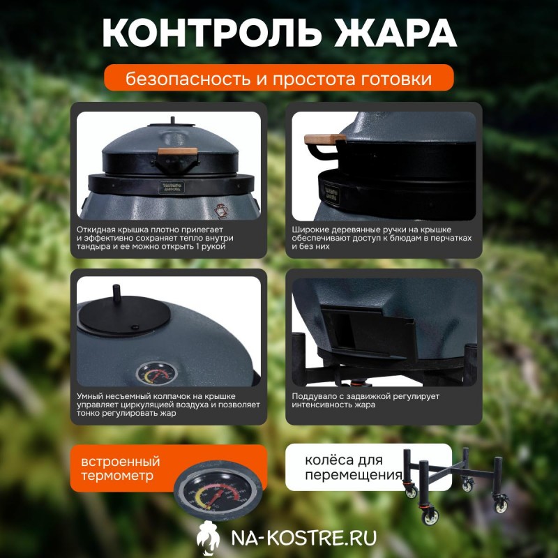 · Минимальное вмешательство: После того, как вы поместили продукты в тандыр и закрыли крышку, процесс приготовления идет своим чередом. Вам остается лишь наслаждаться ароматом и предвкушать результат. Это освобождает ваше время для общения с гостями, отдыха или других дел.